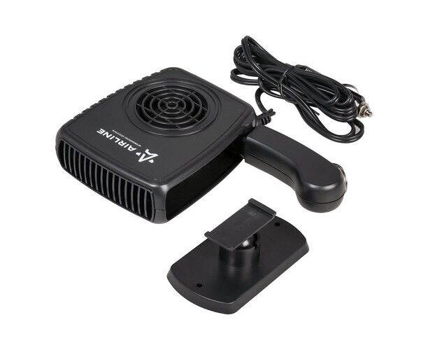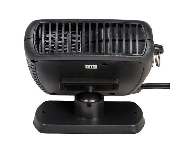 Автомобильный обогреватель позволяет максимально быстро увеличить температуру в салоне транспортного средства, а также изделие играет роль вентилируемого устройства при жарких погодных условиях. Обогреватель работает от сети прикуривателя автомобиля с напряжением питания 12В. Для удобства при эксплуатации предусмотрена подставка, расположенная под корпусом изделия, а также откидная ручка.