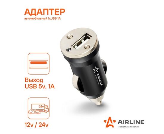 Адаптер автомобильный 1хUSB 1А, 12/24В (ACH-1U-11)