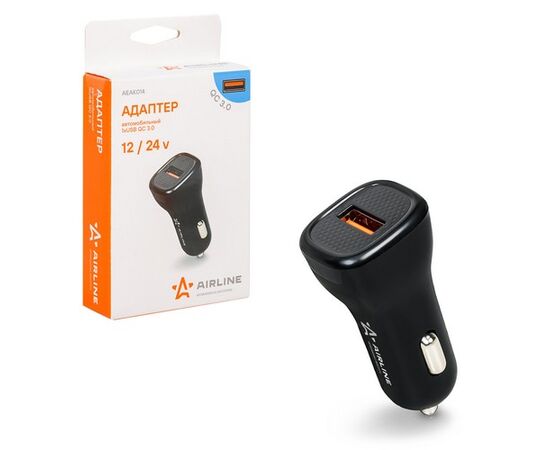 Адаптер автомобильный 1хUSB QC 3.0 12/24В (AEAK014)