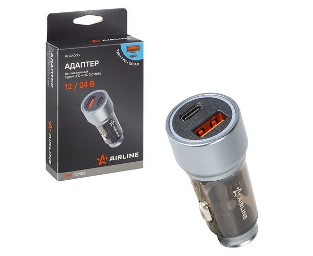 Адаптер автомобильный Type-C PD + QC 3.0 38Вт, 12/24В PRO (AEAK003)