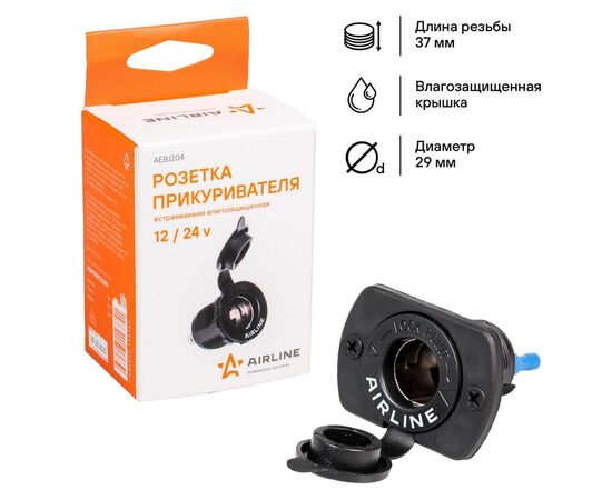 Гнездо прикуривателя встраиваемая влагозащ. 12/24В пластик (AEBJ204)