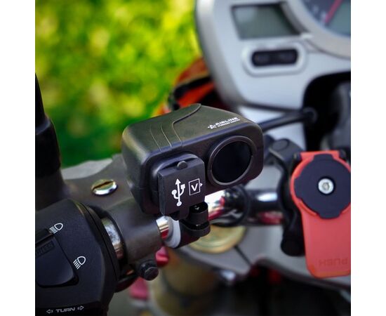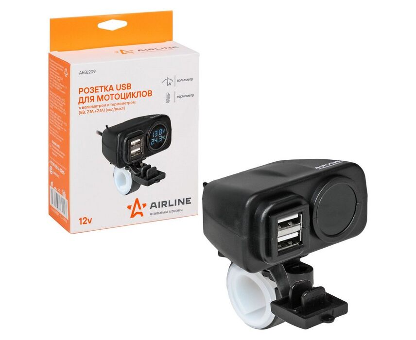 Розетка USB для мотоциклов с вольтметром и термометром (5В, 2.1А+2.1А) (вкл/выкл) (AEBJ209)