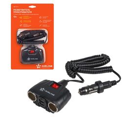 Этот разветвитель на два гнезда с витым проводом и штекером с фиксацией в гнезде прикуривателя. Разветвитель снабжён двумя разъёмами USB, выключателем питания и индикатором работы. Устройство фиксируется в гнезде прикуривателя автомобиля и оснащает автосалон двумя добавочными портами...
