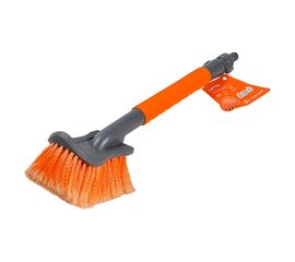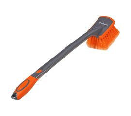 Компактная пластиковая щетка серого цвета для мытья автомобиля поможет очистить машину от загрязнений, а также помыть ее с помощью присоединяемого шланга с водным напором. Диаметр щетины щетки составляет 0,3 мм. Рабочая поверхность изделия имеет ворс средней длины, а также оранжевую окраску. Со...