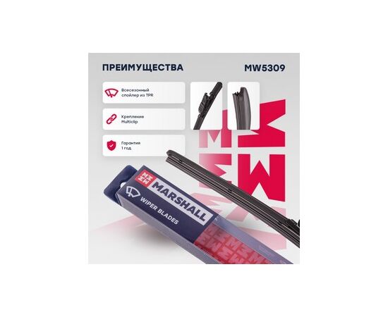 Бескаркасная щетка стеклоочистителя 16” / 41 см hook, side pin, push/pinch button 19 mm (MW5309)