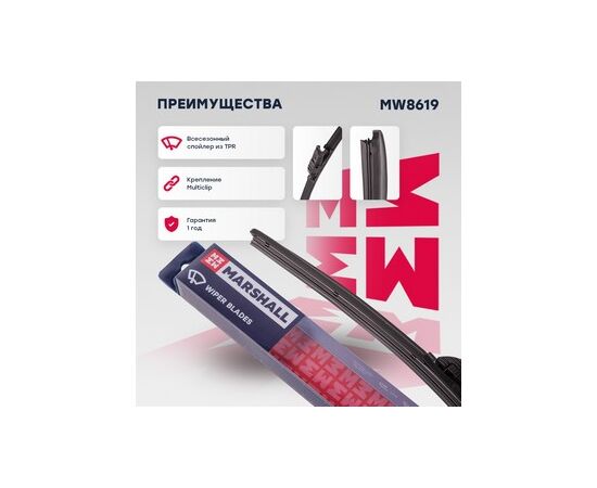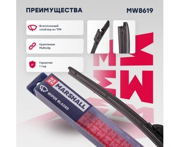 Щетка стеклоочистителя бескаркасная 18” / 45 см hook, side pin, push/pinch button 19 mm (MW8619)