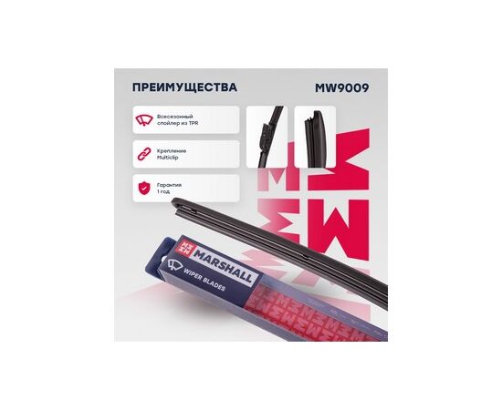 Бескаркасная щетка стеклоочистителя 21” / 53 см hook, side pin, push/pinch button 19 mm (MW9009)
