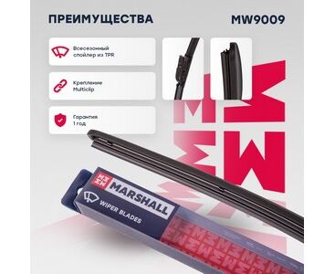Бескаркасная щетка стеклоочистителя 21” / 53 см hook, side pin, push/pinch button 19 mm (MW9009)