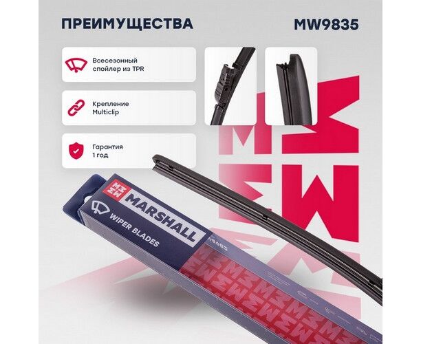 Щетка стеклоочистителя бескаркасная 22” / 55 см hook, side pin, push/pinch button 19 mm (MW9835)