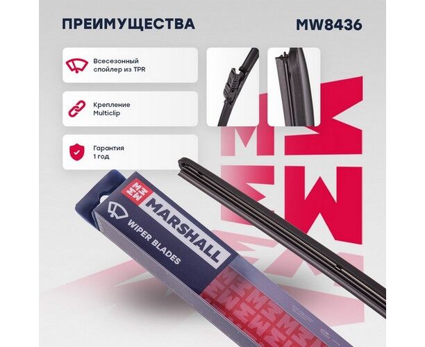 Щетка стеклоочистителя бескаркасная 26” / 65 см hook, side pin, push/pinch button 19 mm (MW8436)