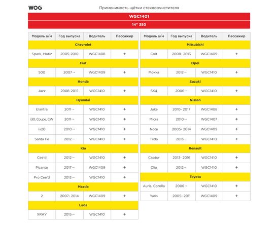Щетка стеклоочистителя бескаркасная 350мм с комплектом адаптеров (10 шт.)