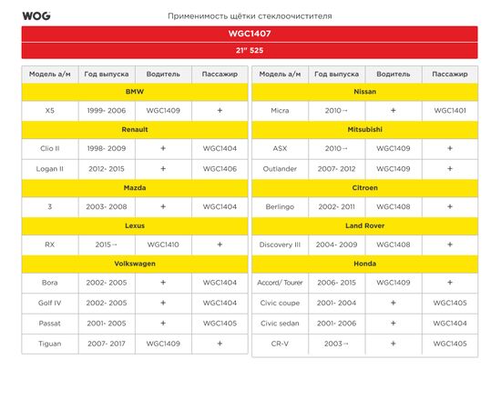 Щетка стеклоочистителя бескаркасная 530мм с комплектом адаптеров (10 шт.)