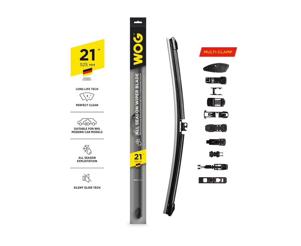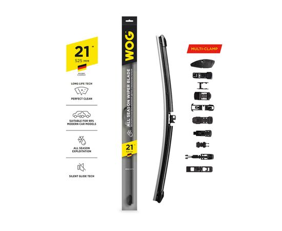 Щетка стеклоочистителя бескаркасная 530мм с комплектом адаптеров (10 шт.)