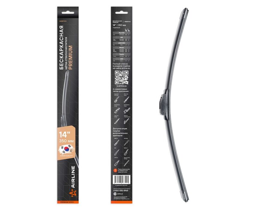 Щетка стеклоочистителя бескаркасная Premium 350мм 5 адаптеров
