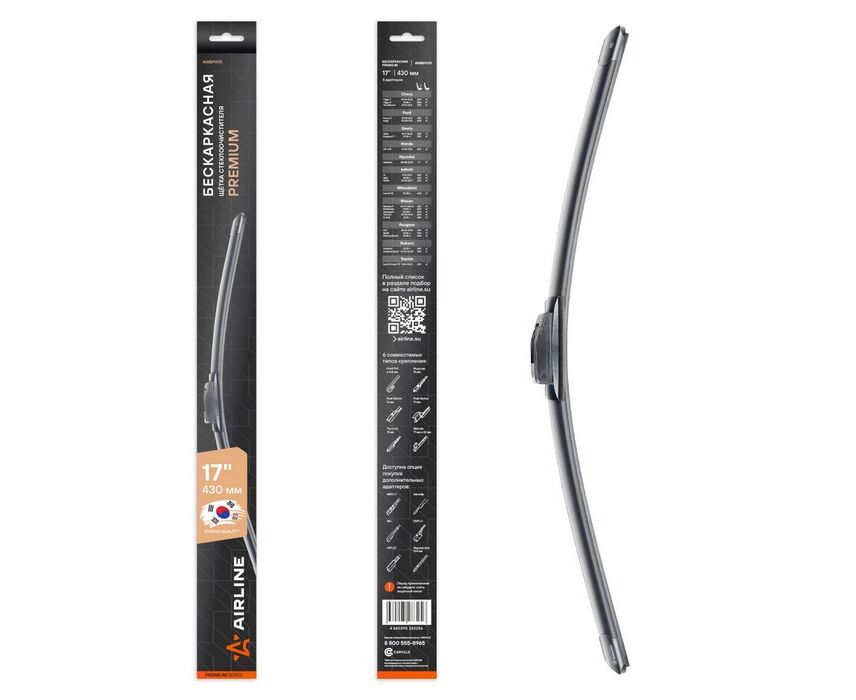 Щетка стеклоочистителя бескаркасная Premium 430мм 5 адаптеров