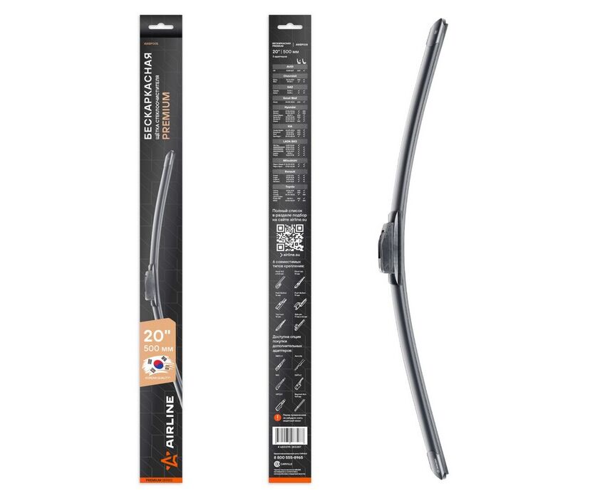 Щетка стеклоочистителя бескаркасная Premium 500мм 5 адаптеров