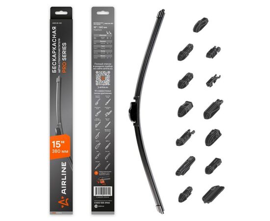 Бескаркасная щетка стеклоочистителя от AIRLINE — это изделие, разработанное по современным технологиям, которые способны значительно увеличить период использования продукта. Размер щетки составляет 380 мм. В комплекте к щетке прилагаются адаптеры, которые необходимы для установки на стекло автомобиля. Типы адаптеров и инструкцию по их установке Вы можете скачать здесь AWB-BK-380