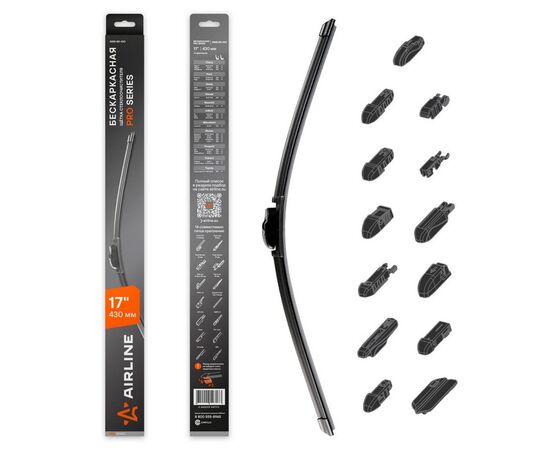 Щетка стеклоочистителя бескаркасная PRO 430мм (17") 10 адаптеров