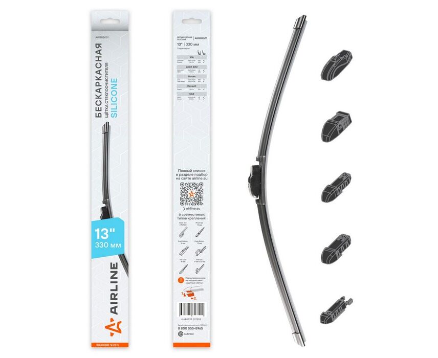 Щетка стеклоочистителя бескаркасная Silicone 330мм 5 адаптеров