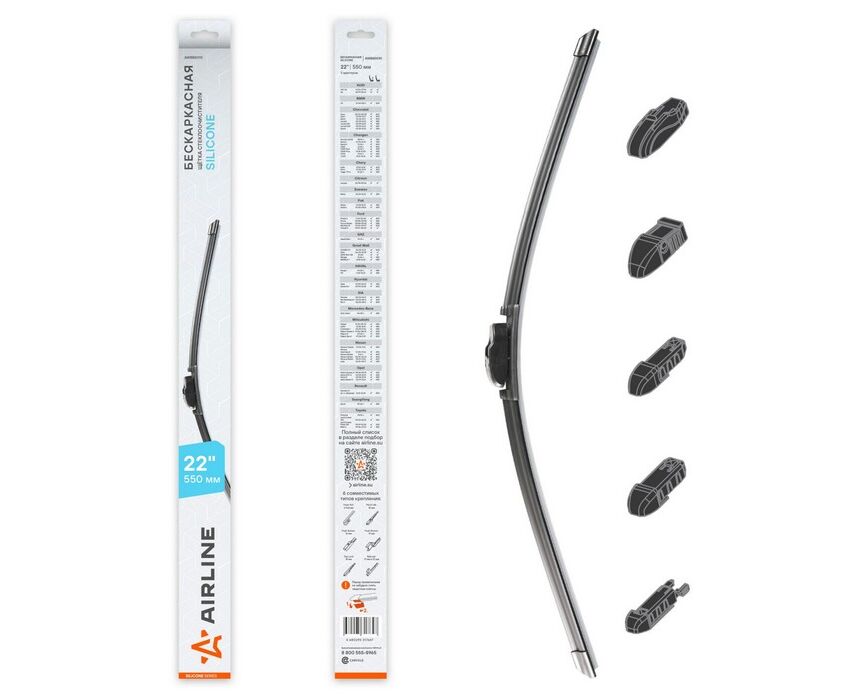 Щетка стеклоочистителя бескаркасная Silicone 550мм 5 адаптеров