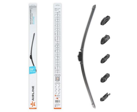 Щетка стеклоочистителя бескаркасная Silicone 650мм 5 адаптеров