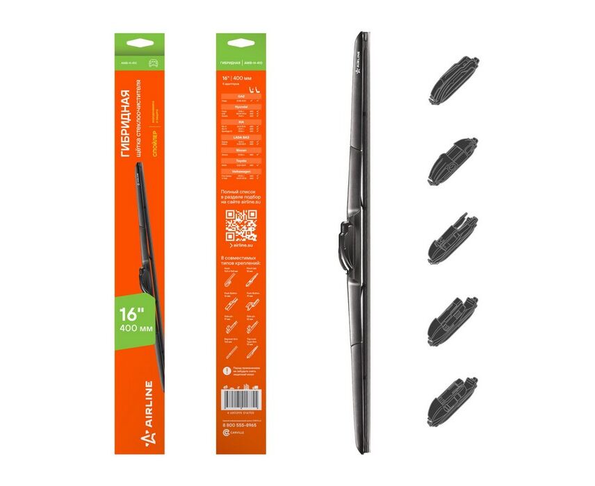 Модельный ряд представлен в широком диапазоне размеров от 14 (360 мм) до 28 (700 мм). Для щеток были специально разработаны 8 различных адаптеров, с помощью которых становится возможным использовать щетки в подавляющем большинстве существующих креплений и соответственно сделать подходящими на 99% автомобилей. Щетки, предназначенные для стеклоочистителя от компании AIRLINE, являются гарантом первоклассного качества по доступной цене. Изделие разработано конструкторами компании, которые позаботились о комфорте автомобилиста в период эксплуатации щеток. Щетки не создают звуковых помех, тщательно очищая стекло от загрязнений, не царапая и не повреждая его. Длина щетки составляет 410 мм. AWB-H-410