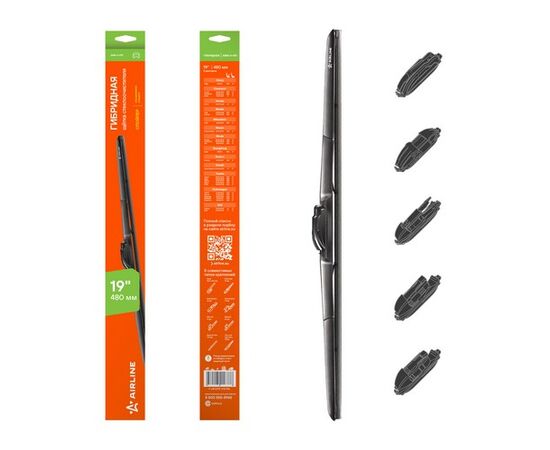 Модельный ряд представлен в широком диапазоне размеров от 14 (360 мм) до 28 (700 мм). Для щеток были специально разработаны 8 различных адаптеров, с помощью которых становится возможным использовать щетки в подавляющем большинстве существующих креплений и соответственно сделать подходящими на 99% автомобилей. Преимуществами и новшествами, разработанными специально сотрудниками AIRLINE, является наличие у щетки в составе частиц озона, а также нанесение графитового покрытия на верхний эксплуатационный слой щетки. Озон создает anti-age технологию, которая значительно увеличивает период использования щетки и обеспечивает сохранение ее рабочих свойств. При функционировании щетки не создают шумовых помех, а также гладко скользят по стеклу, обеспечивая тщательное и безопасное очищение. Данная модель из серии щеток AIRLINE имеет длину 475 мм. AWB-H-475