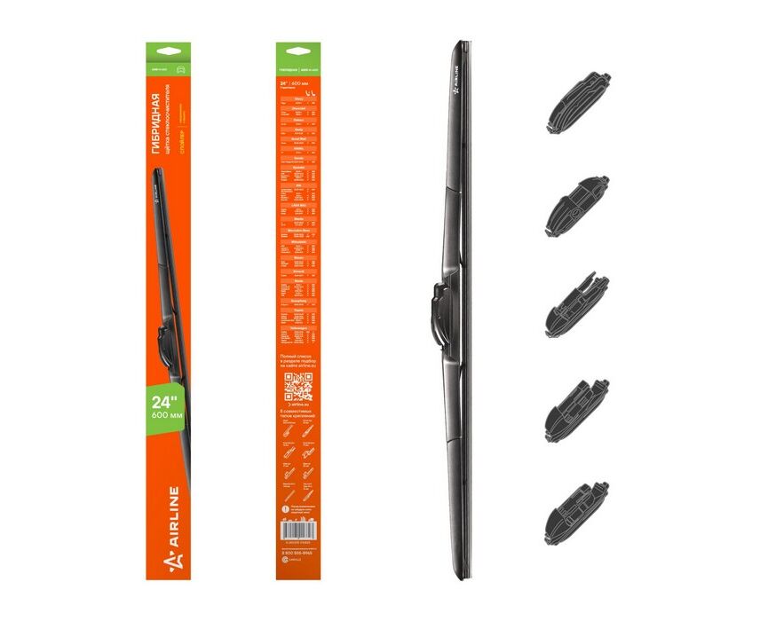 Щетка стеклоочистителя гибридная 600мм (24") 3 адаптера