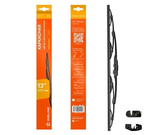 Каркасная конструкция щетки стеклоочистителя — это качество, проверенное десятилетиями. К классической форме щетки производители AIRLINE добавили изменения в составе резины, позволяющие продлить ее срок использования, а также укрепили металлический каркас. Очищающая резиновая лента щетки плотно прилегает к стеклу машины и захватывает даже самые труднодоступные загрязнения. Типы адаптеров и инструкцию по их установке Вы можете скачать здесь AWB-K-330