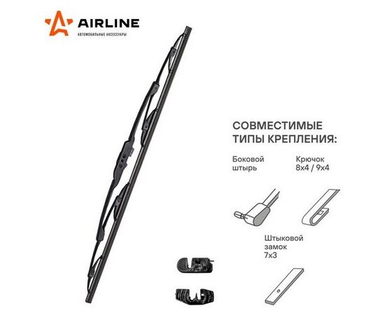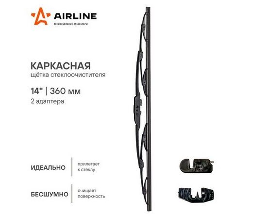 Каркасный тип конструкции является классическим строением щеток стеклоочистителя. Такая продукция доступна в ценовом плане, обладает высокой прочностью, не подвержена коррозии под воздействие температур и первоклассно справляется со своей главной задачей в виде очистки стекол. Преимуществом щеток от AIRLINE является высокое качество чистящей резиновой ленты, которая производится с применением современных разработок. Типы адаптеров и инструкцию по их установке Вы можете скачать здесь AWB-K-360