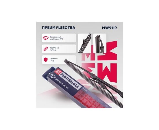 Каркасная щетка стеклоочистителя 19” / 48 см hook, side pin, bayonet arm 19 mm (MW9119)