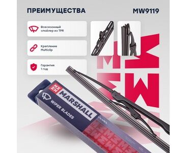 Каркасная щетка стеклоочистителя 19” / 48 см hook, side pin, bayonet arm 19 mm (MW9119)