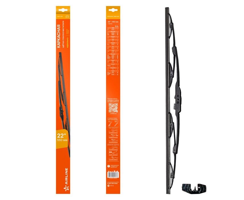 От качества щетки стеклоочистителя зависит уровень видимости при управлении транспортным средством. Именно поэтому AIRLINE предлагает изделия только из высококачественных материалов, изготовленных по современным технологиям. Каркасная щетка обладает высокими показателями скорости и хорошим аэродинамическим сопротивлением. Типы адаптеров и инструкцию по их установке Вы можете скачать здесь AWB-K-550