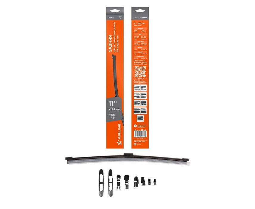 Щетка стеклоочистителя задняя бескаркасная 275мм (11") 8 адаптеров