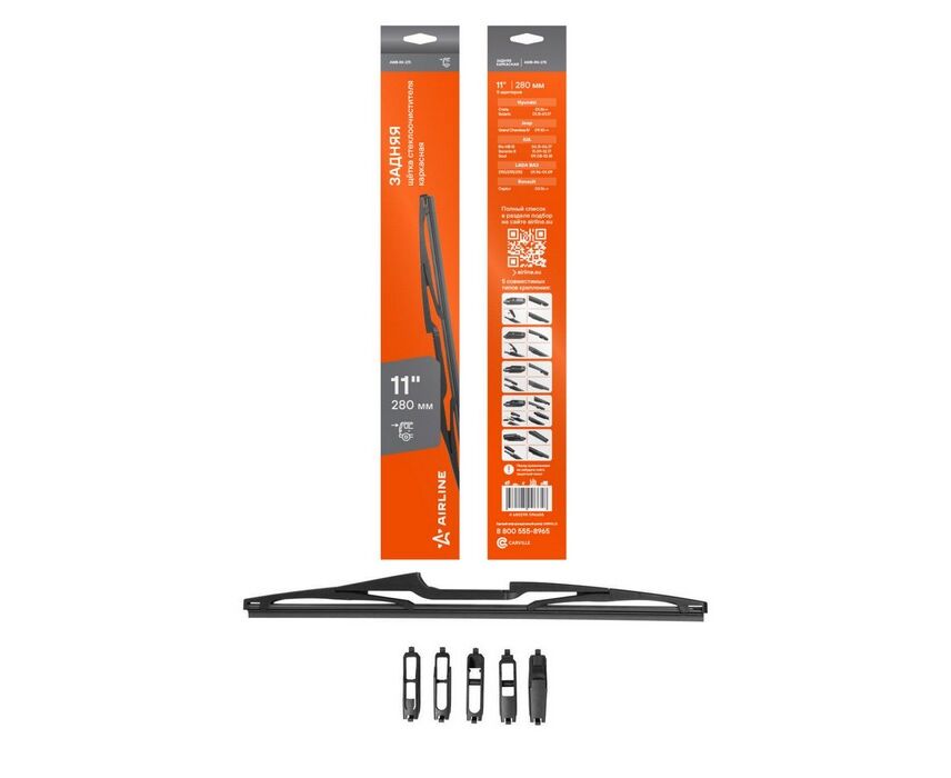 Щетка стеклоочистителя задняя каркасная 275мм (11") 5 адаптеров