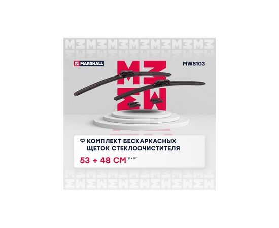 Щетки стеклоочистителя бескаркасные 21” / 53 см + 19” / 48 см hook, side pin, push/pinch 1
