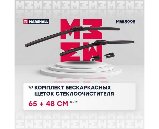 Щетки стеклоочистителя бескаркасные 26” / 65 см + 19” / 48 см hook, side pin, push/pinch 1