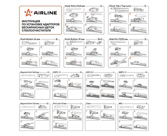 Щетки стеклоочистителя бескаркасные 500/480мм 2 типа адптр