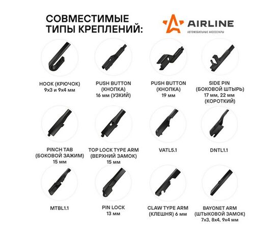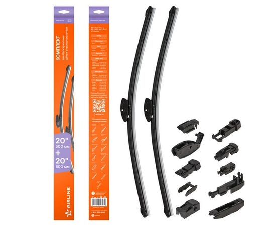 В наборе представлен комплект из щеток стеклоочистителя длиной 510 мм в составе двух изделий. Щетки произведены по современным разработкам, которые позволили значительно повысить уровень качества, при этом сохранив доступную стоимость продукта. Щетки обладают достойными показателями прочности, а также высоким уровнем аэродинамического сопротивления. Типы адаптеров и инструкцию по их установке Вы можете скачать здесь AWB-BK-510K