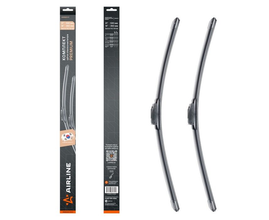 Щетки стеклоочистителя бескаркасные 530/350мм Крючок 9х3, 9х4мм