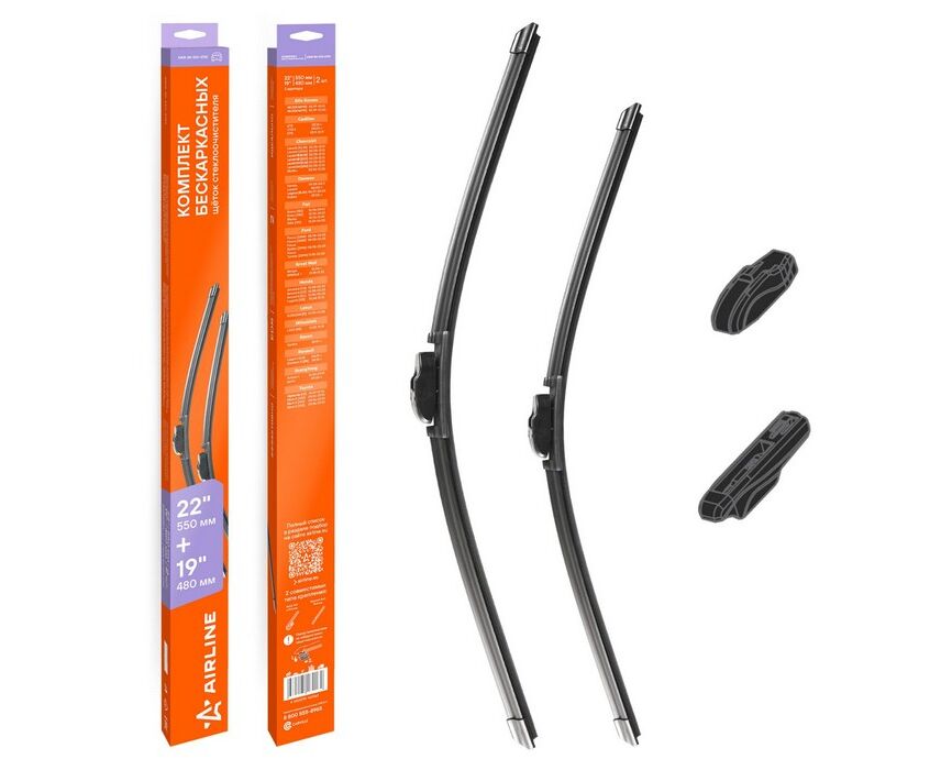 Щетки стеклоочистителя бескаркасные 550/480мм 4 адптр