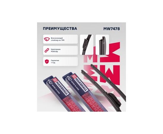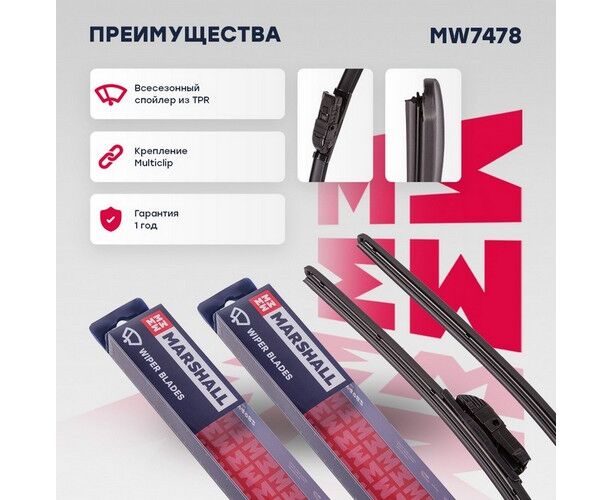 Щетки стеклоочистителя бескаркасные 24” / 60 см + 16” / 41 см hook, side pin, push/pinch 1