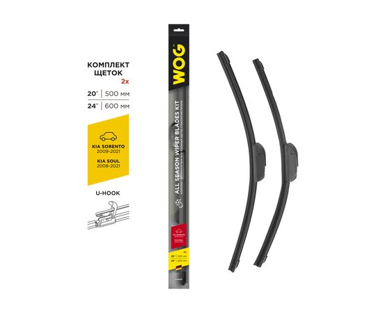 Щетки стеклоочистителя бескаркасные 600/500мм крепление hook