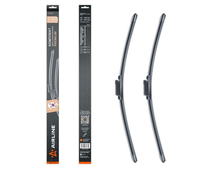 Щетки стеклоочистителя бескаркасные 600/500мм Push Button 16мм