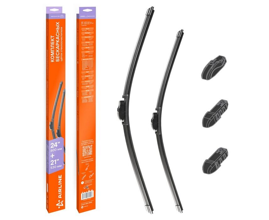 Щетки стеклоочистителя бескаркасные 600/530мм (24"/21") 2 шт. 5 адптр