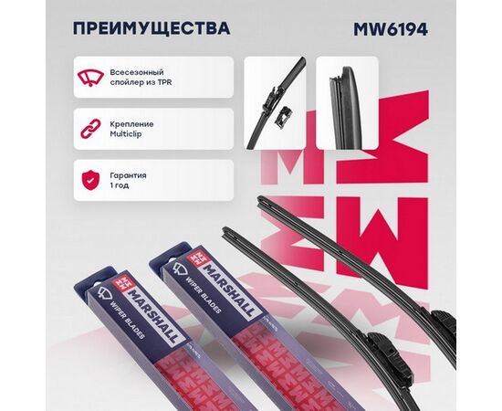 Щетки стеклоочистителя бескаркасные 24” / 60 см + 21” / 53 см hook, side pin, push/pinch 1