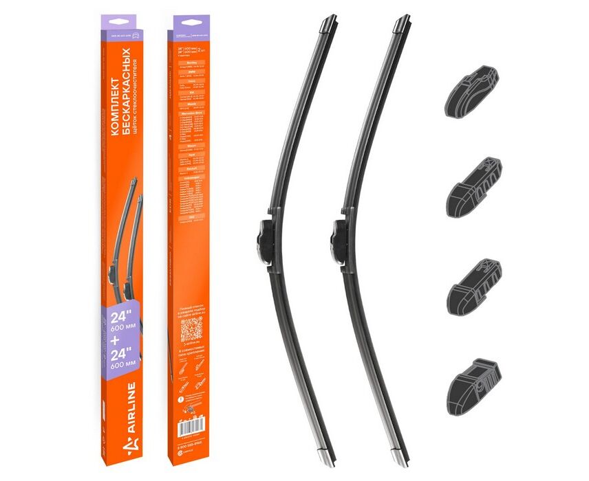 Щетки стеклоочистителя бескаркасные 600/600мм (24"/24") 2 шт. 5 адптр