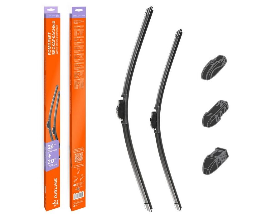 Щетки стеклоочистителя бескаркасные 650/500мм 2 шт. 3 адптр