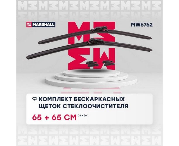 Щетки стеклоочистителя бескаркасные 26” / 65 см + 26” / 65 см hook, side pin, push/pinch 1