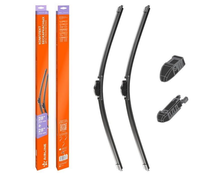 Щетки стеклоочистителя бескаркасные 700/700мм (28"/28") 2 шт. 3 адаптера